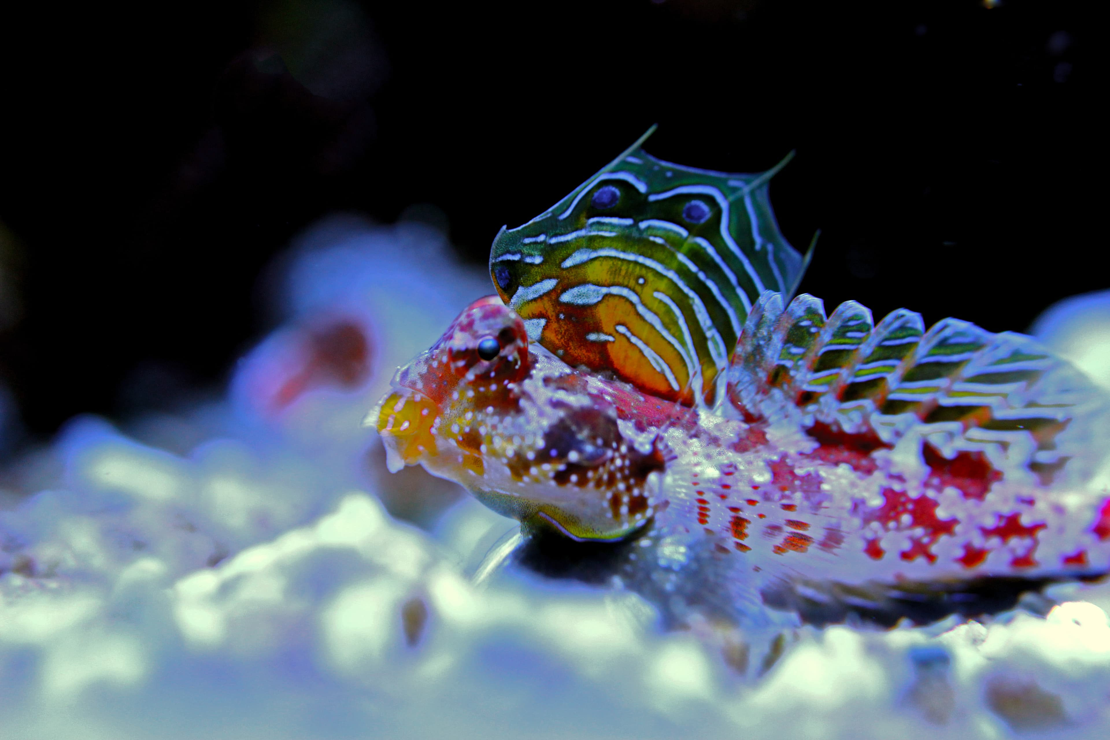 Dragonets are a fascinating group of small, colorful fish that belong to the family Callionymidae. Known for their intricate patterns and vibrant hues, these fish are a favorite among reefkeepers looking to add a splash of color to their aquariums. Dragonets are bottom-dwellers, often seen gliding gracefully along the substrate as they search for food. They have a unique way of moving, using their pectoral fins to 'walk' along the sand and rocks. While they are visually stunning, dragonets require specific care and are best suited for experienced aquarists. They are known to be picky eaters, often preferring live foods like copepods and amphipods, which means a well-established tank with a thriving pod population is essential for their health and well-being.