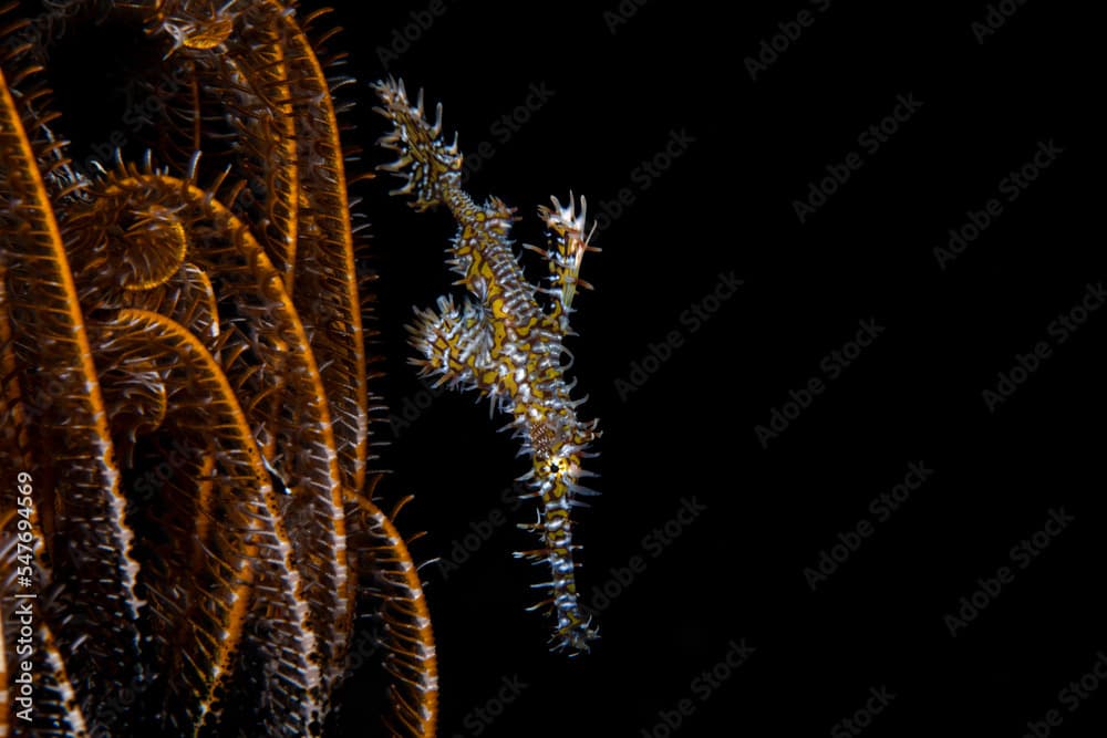 - Common name: Mushroom-coral pipefishScientific name: Siokunichthys nigrolineatus