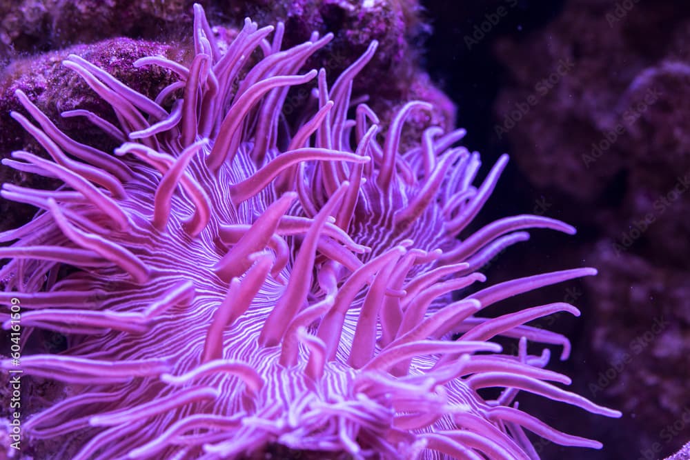 The Long Tentacle Anemone, Macrodactyla doreensis, is a striking invertebrate popular among reef aquarium enthusiasts. Its long, tapering tentacles and vibrant colors ranging from red to green and brown make it a captivating addition to any tank. This species is known for its relatively easy care requirements and its ability to host clownfish, which adds to its appeal in the hobby.